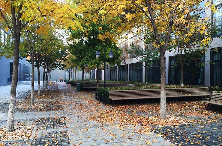Typical campuses in China usually have east-west aligned buildings to maximize solar gain and to avoid east-west solar exposure.