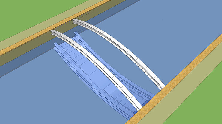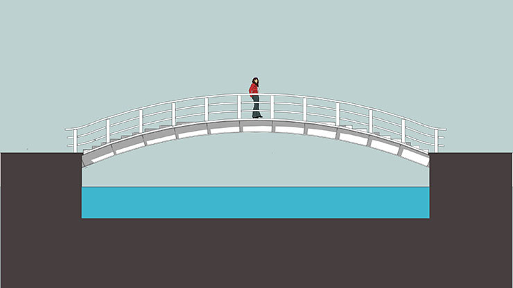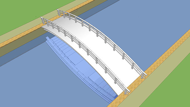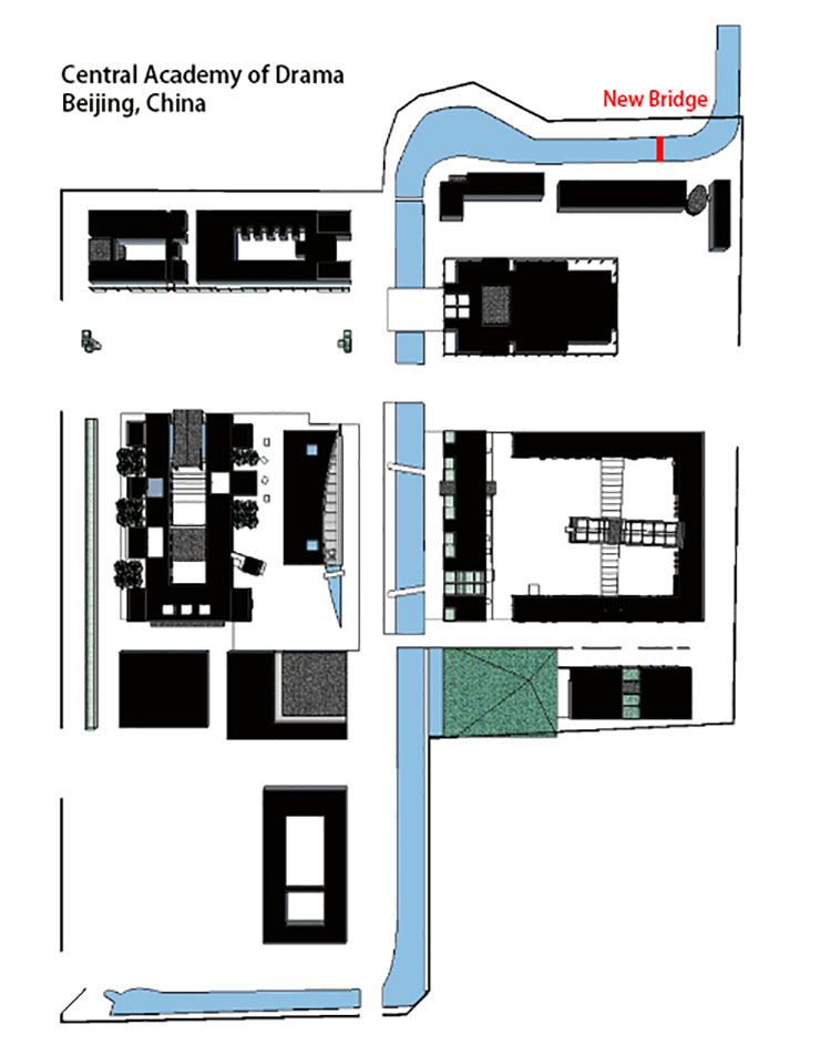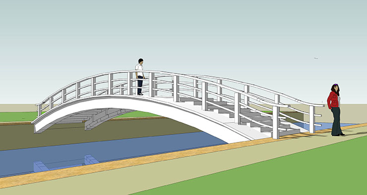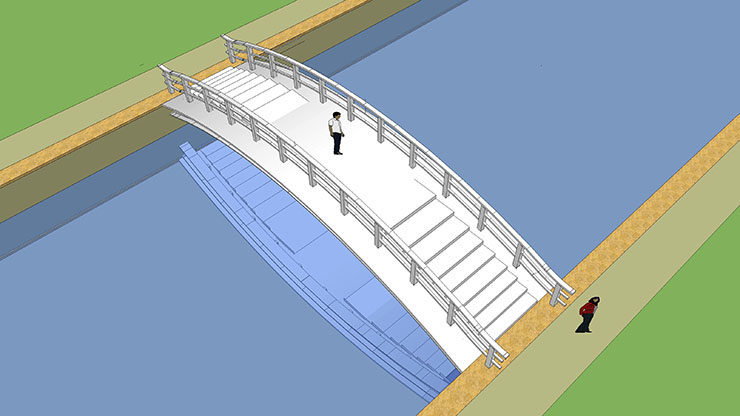 The new bridge is part of a pedestrian circulation system that allows students and staff to explore and enjoy walks along both sides of the canal that bisects the campus.