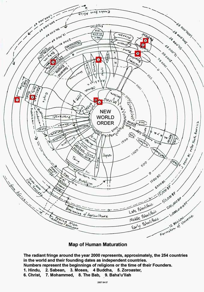 In Fig. 1, Map of Human Maturation, the various civilizations of the world appear as rivers flowing to a common sea. The many currents of civilization are now a common heritage for all of us to share. The resources we have to build a New World Order, in addition to the fruits of science and technology, include the wealth of experience gained by a multitude of civilizations over countless centuries.